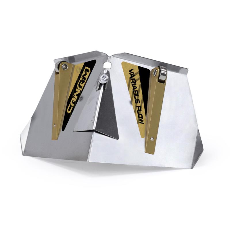 Simply slide the cover plate up to get a higher mud flow rate, and down for lower.
